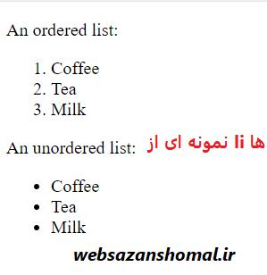 برچسب li Tag در HTML