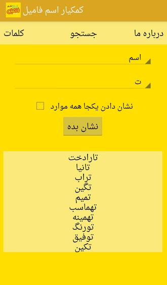 تصویر دوم برنامه کمکیار اسم فامیل