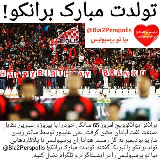 برانکو ایوانکوویچ, پرسپولیس تهران صنعت نفت آبادان, بیا تو پرسپولیس, پرسپولیس, مهدی ترابی, Bia2Perspolis, جشن تولد, ماریو بودیمیر