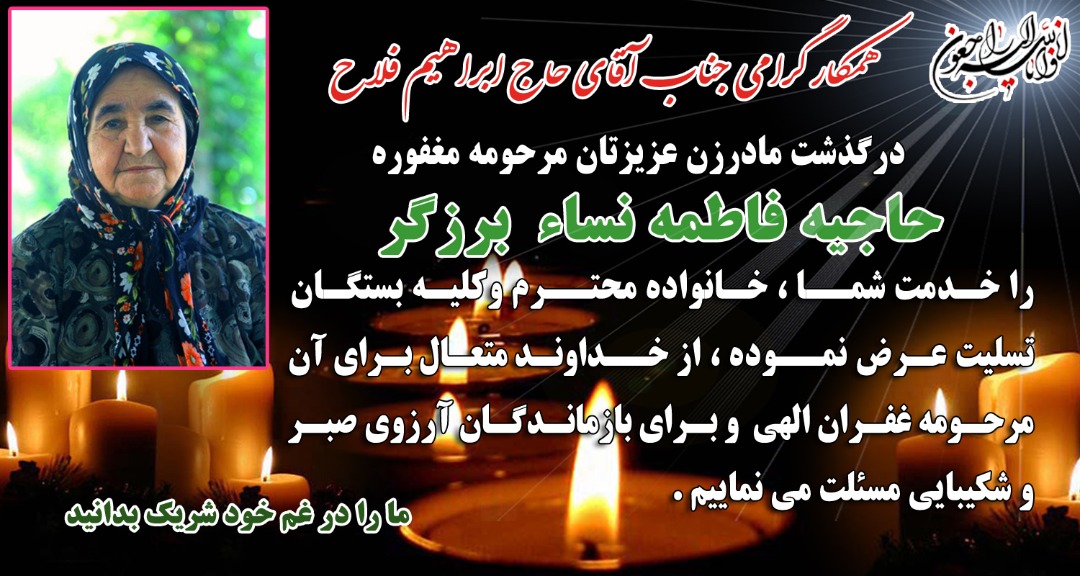 تسلیت درگذشت مادر خانم حاج ابراهیم فلاح